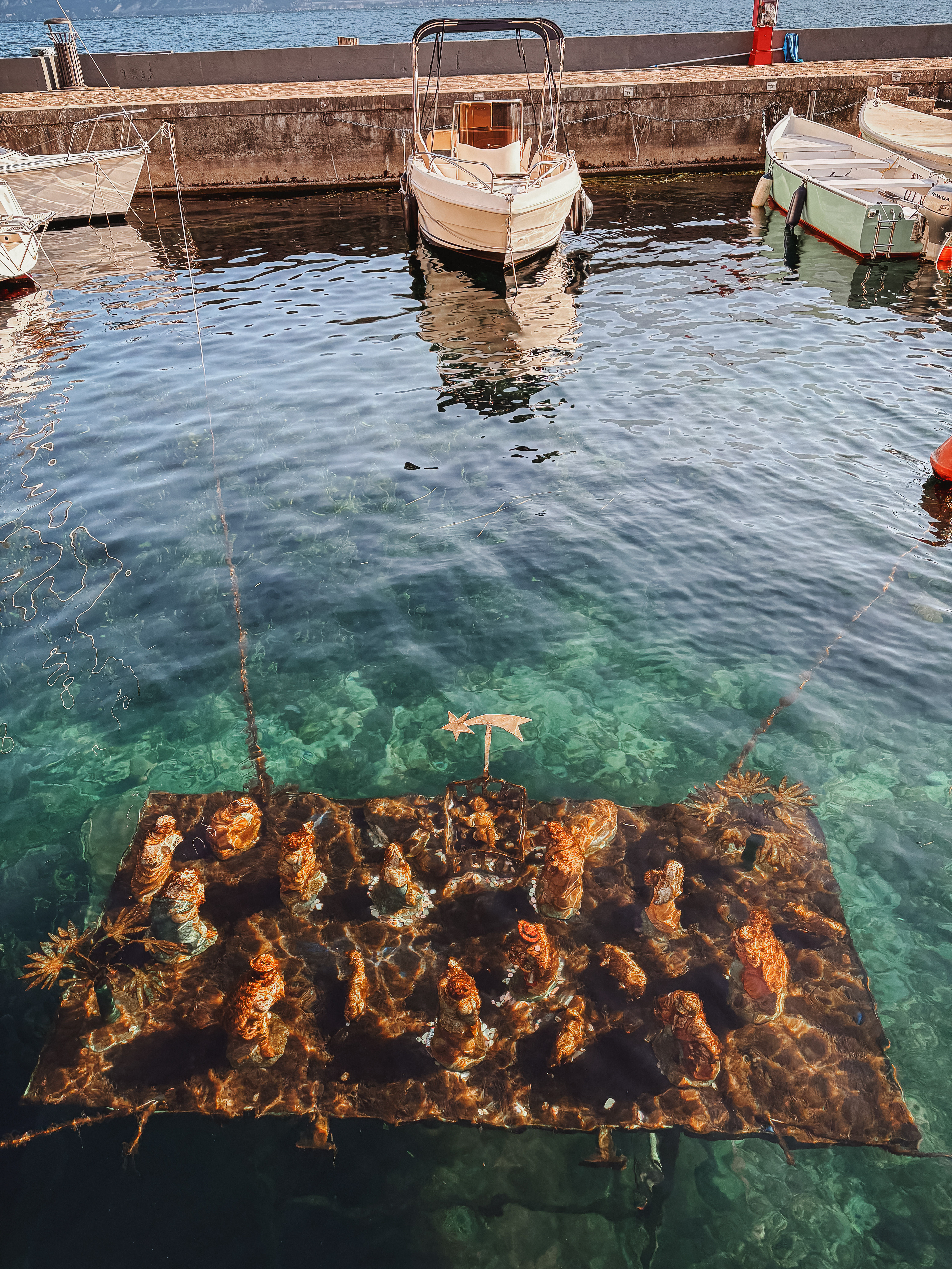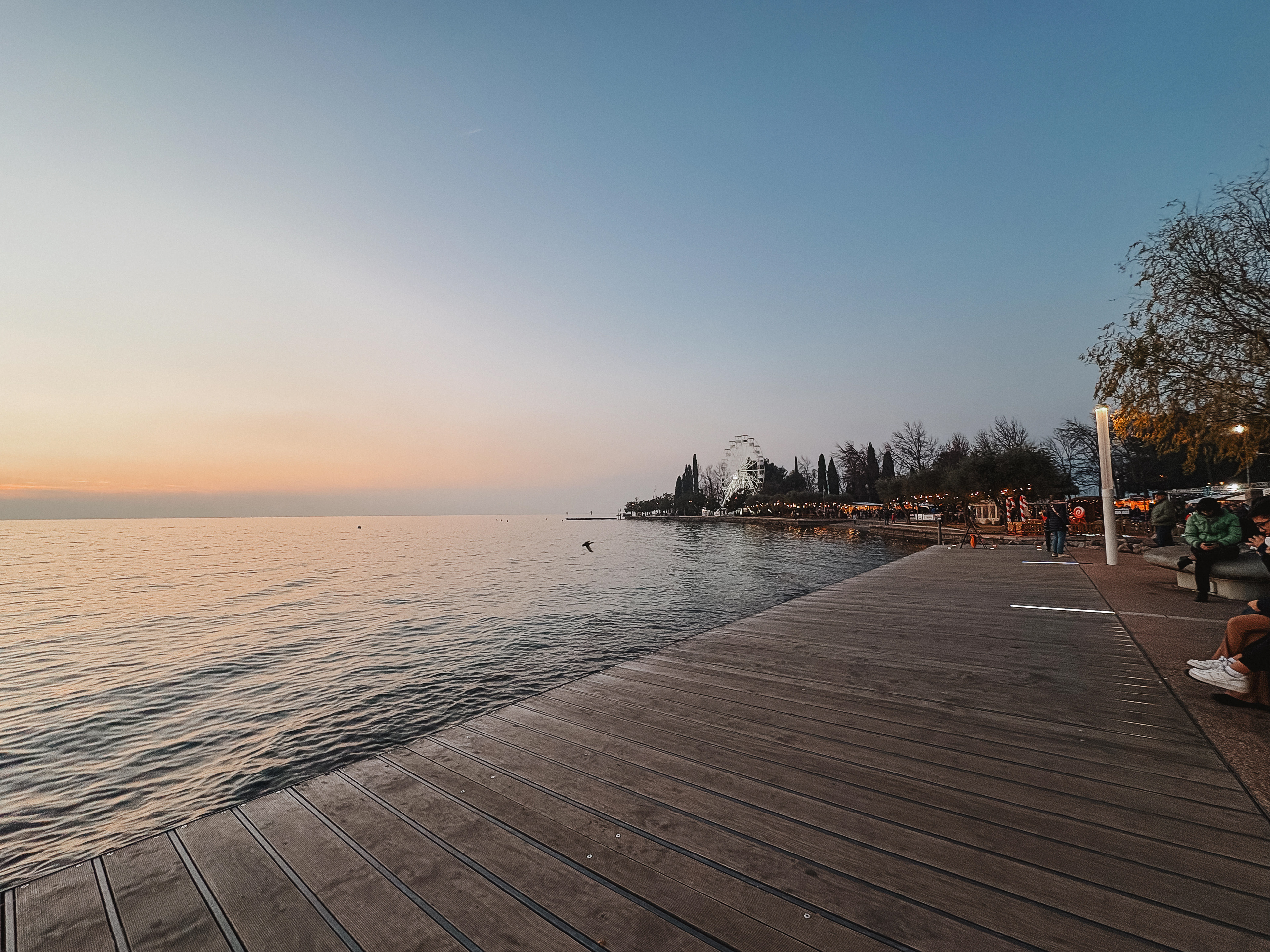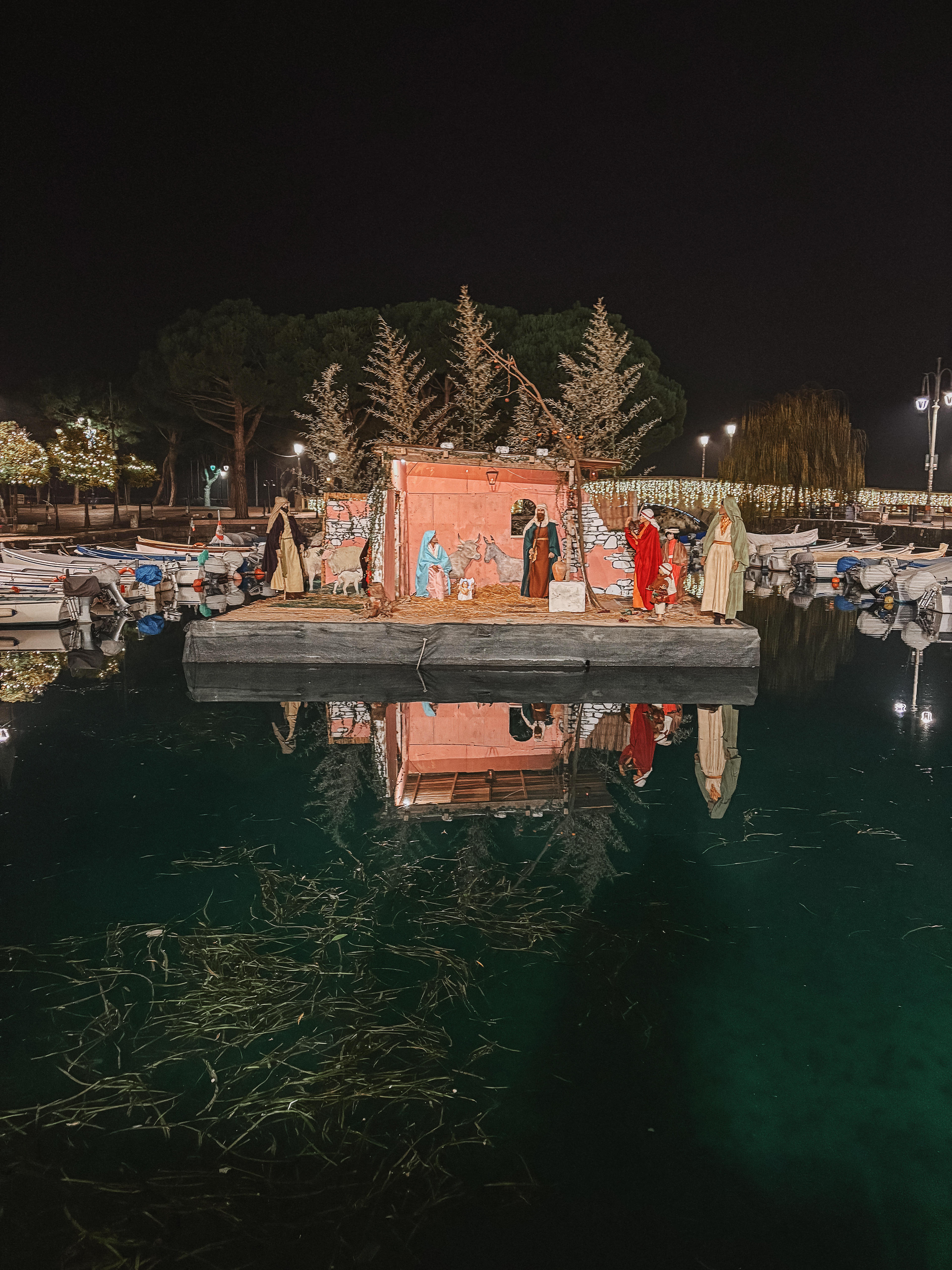 Cestou zpátky jsme trochu podcenili čas na tamní siestu a nezbylo nám nic jiného než poobědvat studené proscuttio s bagetou. Po krátkém odpočinku jsme vyrazili na pěší procházku směrem do Desenzana, kde jsme cestou našli super restauraci Bellavista Trattoria, kterou Vám můžeme doporučit. Po večeři jsme došli až k hradu s nočním výhledem a nejvíce nás překvapil plovoucí betlém v přístavu.