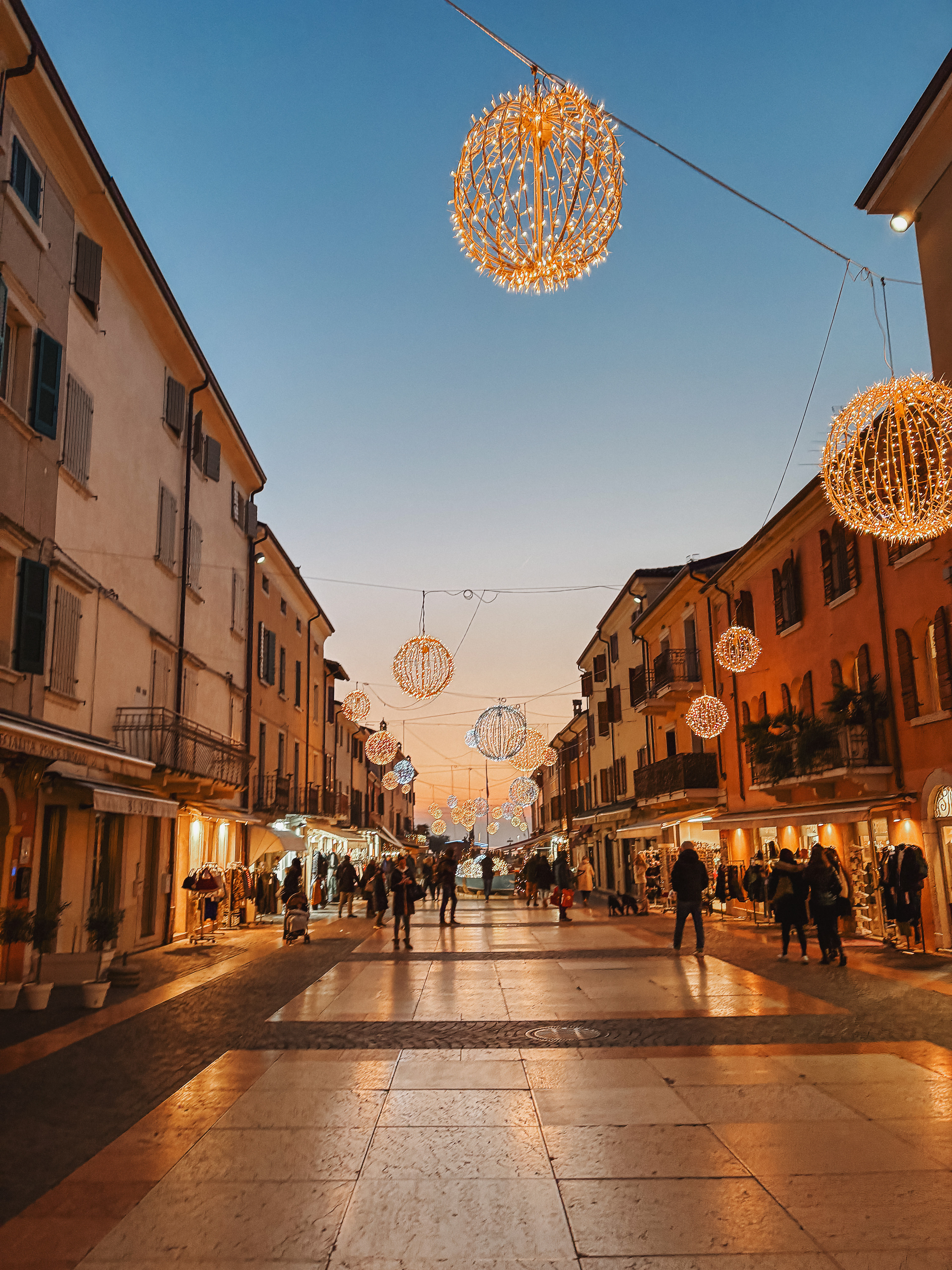 Ráno jsme si v supermarketu, který jsme měli skoro hned vedle ubytovaní, koupili snídani a po ní jsme vyrazili procházkou do historické části Sirmione. Jakmile jsme tam dorazili, okouzlila nás vánoční atmosféra v kombinaci s italskými uličkami. Návštěvu jsme nemohli zahájit jinak než kávou a zmrzlinou, kterou jsme si dali hned u hradu. Na ten jsme ale nešli - nemáme rádi dlouhé fronty a raději jsme si prošli městečko jako takové.