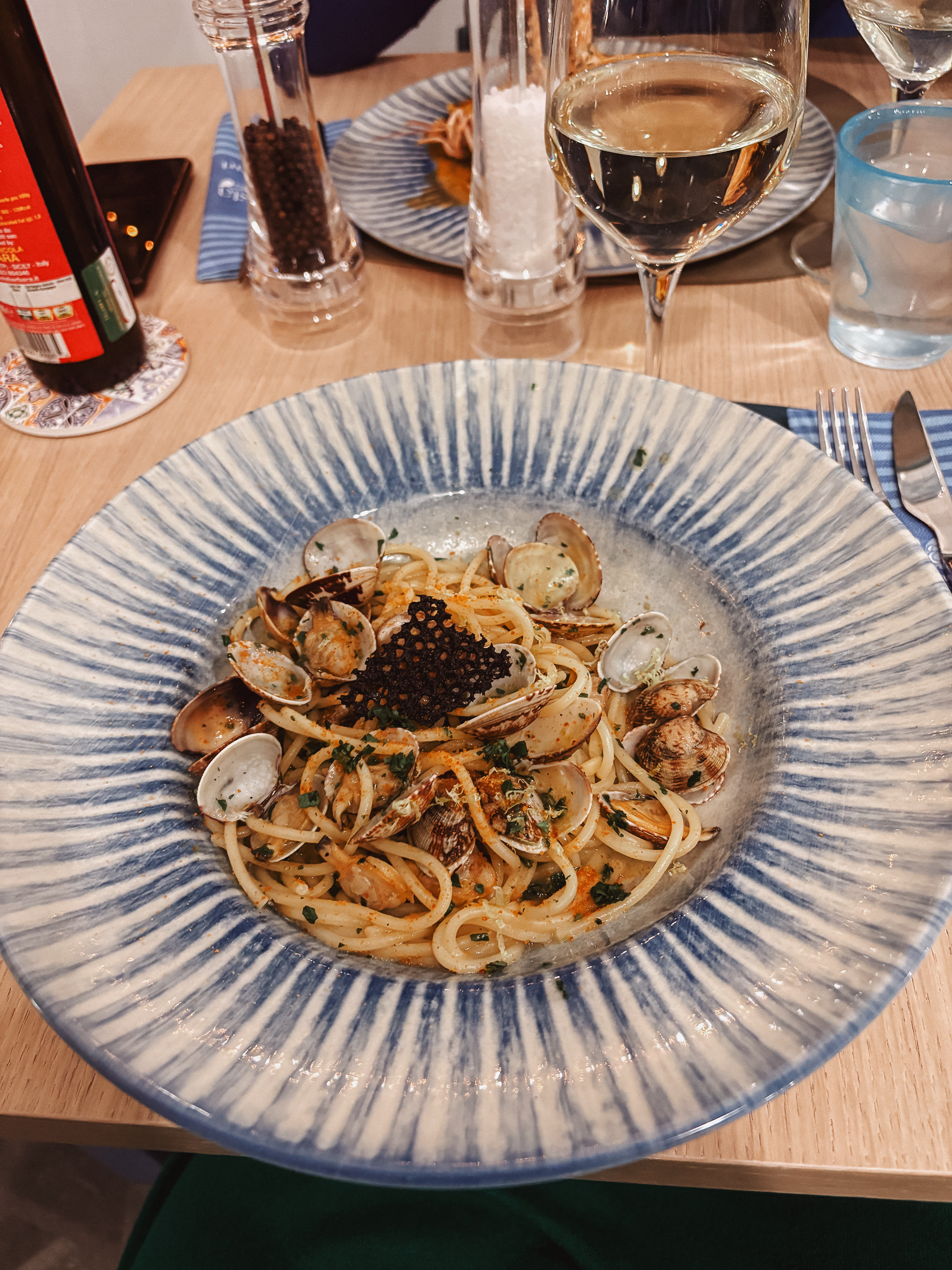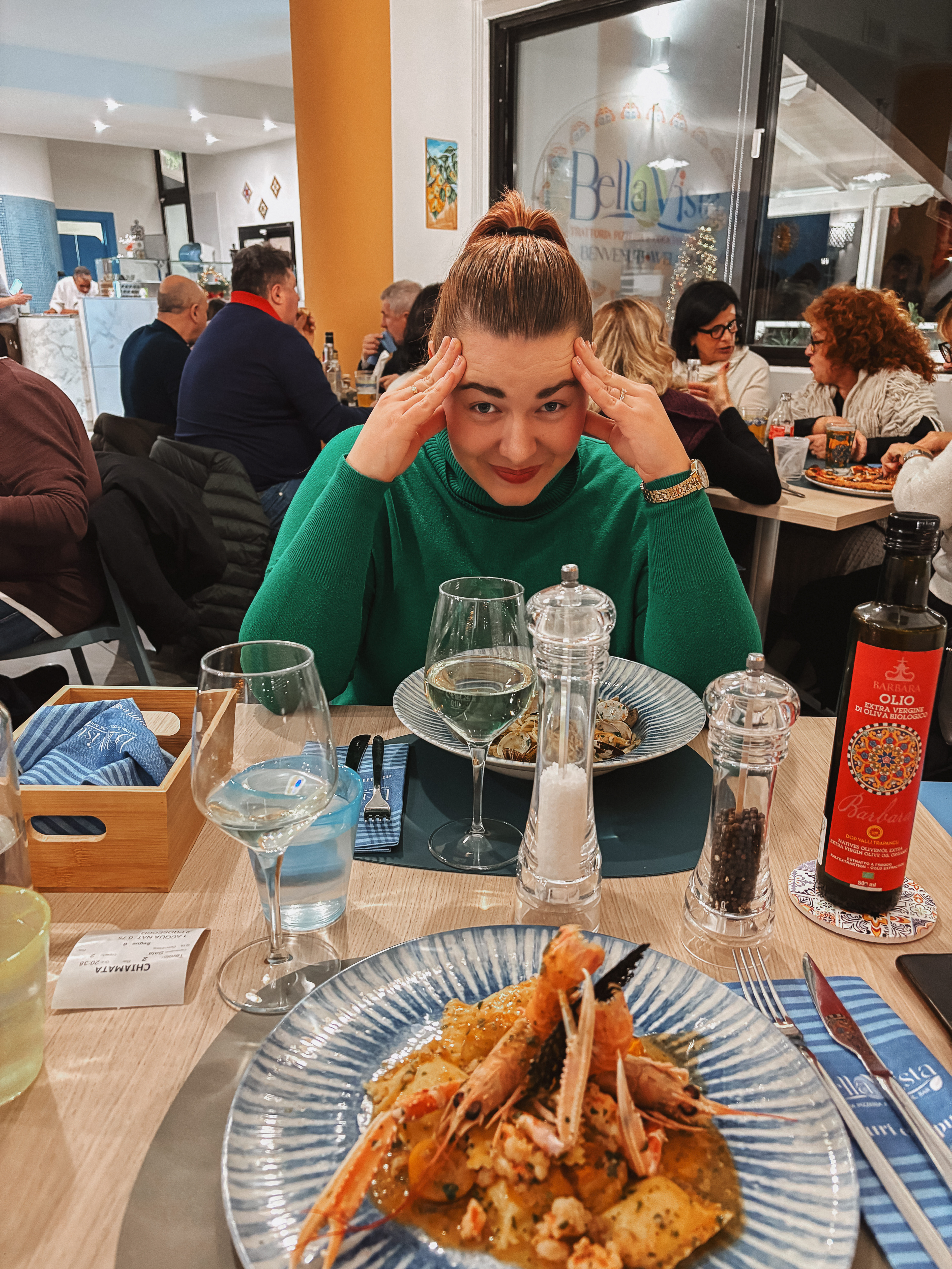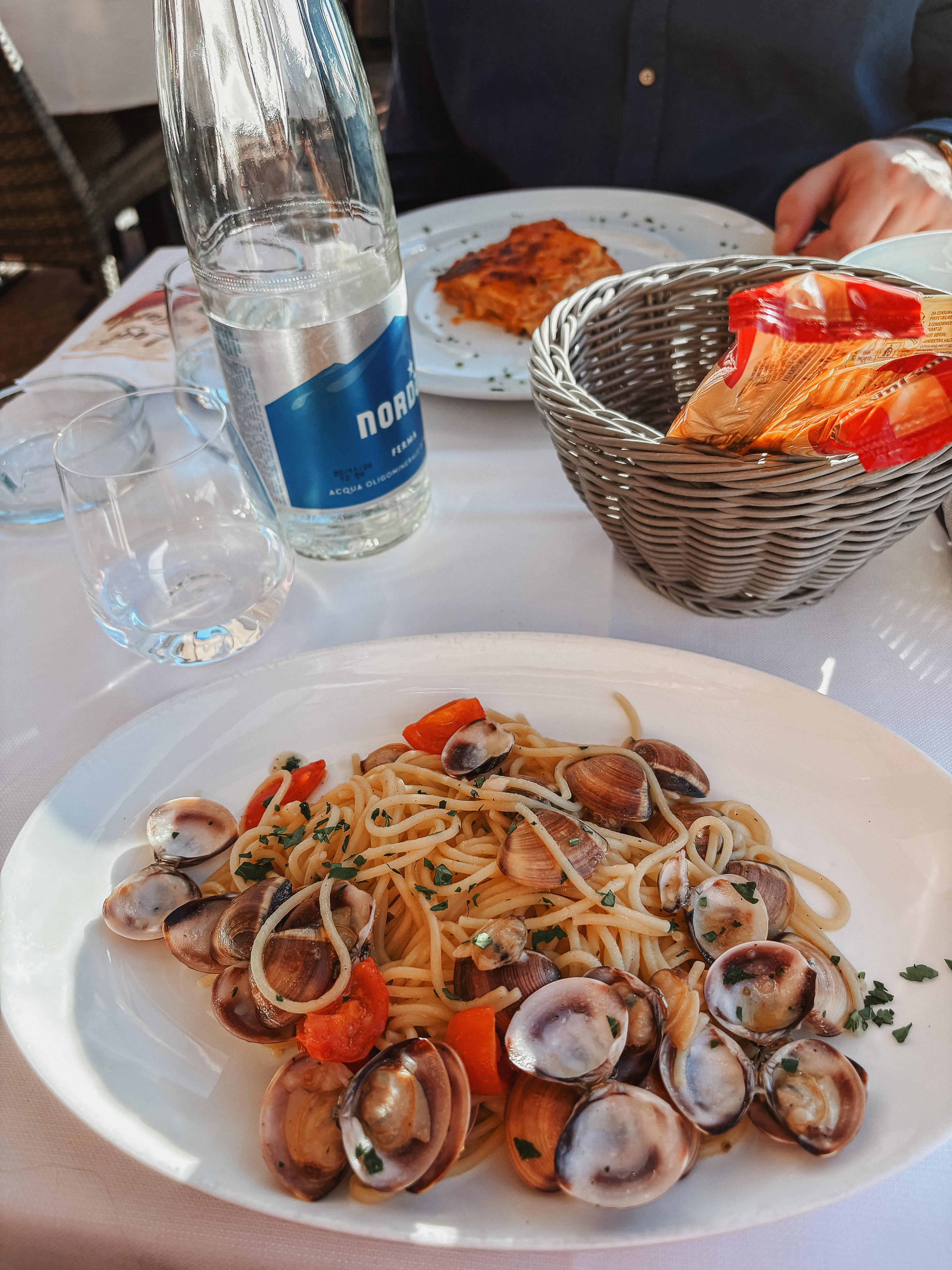 Náš zásnubní den jsme završili návštěvou restaurace Bellavista Trattoria v Desenzano z prvního dne. Oba jsme si chtěli dát něco trochu slavnostního. Marcelka si svou objednávku samozřejmě přeložila až po objednání a dost se vyděsila, protože slovo jikry v ní nevzbuzuje důvěru už od malička. Po ochutnání ale přišla veliká úleva, jelikož jídlo bylo opět vynikající.