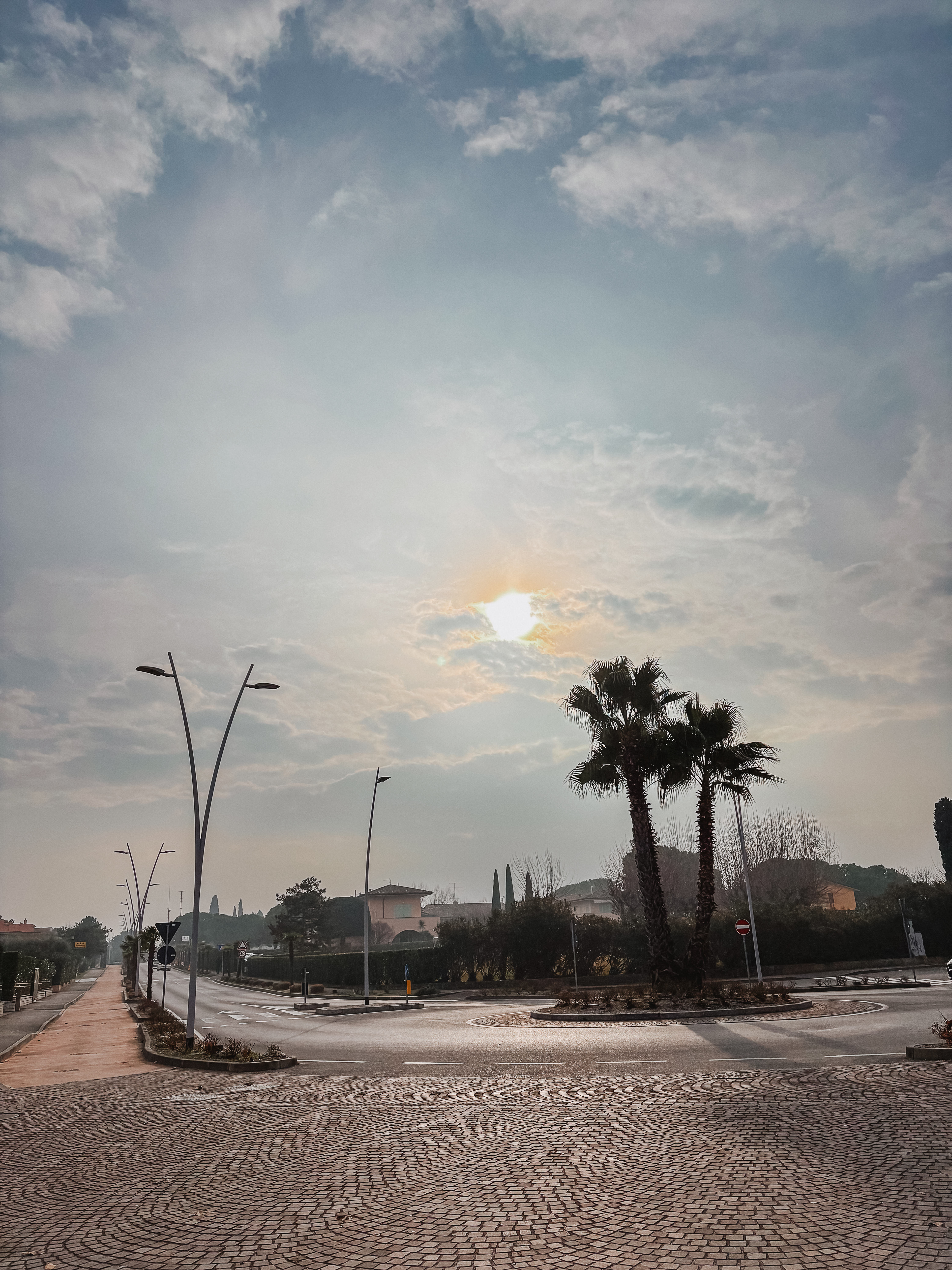 Vyjeli jsme hned na Nový rok, tedy ne zrovna moc vyspaní a lehce unavení, a přesto, že nás značnou část cesty doprovázela velká mlha, jsme cestu zvládli bez větších obtíží. Ondra je milovníkem západů slunce, čímž už nakazil i Marci, a tak jsme si první nádherný západ slunce užili už po cestě. Na italském výletě nás jich pak čekalo ještě několik. Do cíle jsme s pár zastávkami dojeli až později večer a jeli jsme se už jen ubytovat a spát. Naše ubytování na okraji Sirmione bylo skromné, ale s ohledem na to, že Marci udělala rezervaci den předem, jsme byli spokojení.