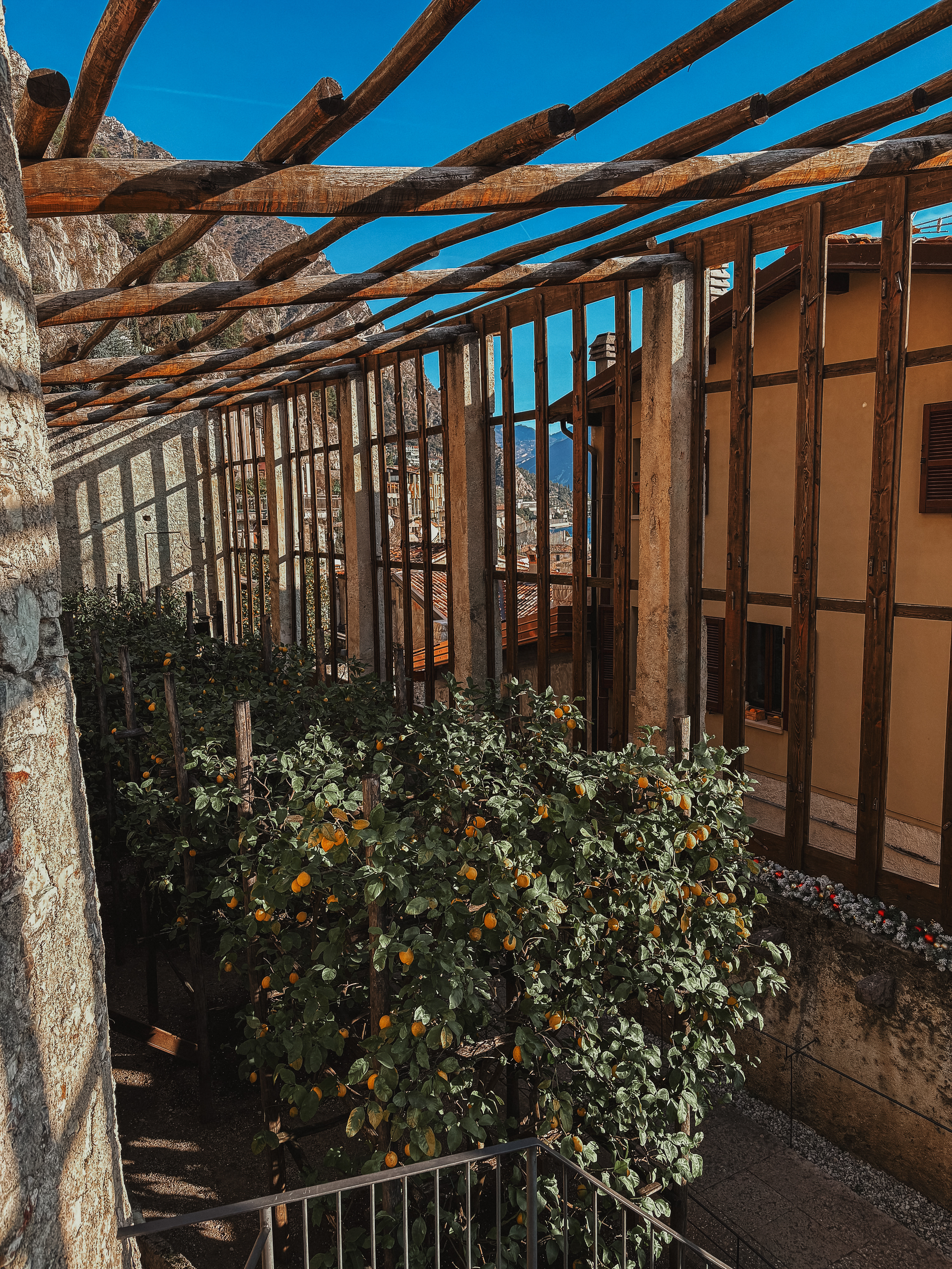 Jelikož jsme původně plánovali návštěvu města Limone během výletu do Malcesine a lodí jsme se tam nakonec nedostali, rozhodli jsme se tam vyrazit autem po druhé straně pobřeží a spojit to s výletem do nejsevernějšího města - Riva del Garda. Jak už název napovídá, je Limone město citrónů a jeho atmosféra je velmi autentická. Citróny jsou zde dominantní, proto nikoho asi nepřekvapí, že je ve městě i muzeum citrónů. To jsme navštívili (navíc v lednu zdarma), ale více než edukace v oblasti citrusů nás bavili výhledy a liduprázdno. To bylo z počátku příjemné, ale s rostoucí hodinou a absencí kofeinu v krvi už jsme zoufale hledali alespoň nějakou maličkou kavárnu. Na tu jsme narazili až potom, co jsme sedli zpátky do auta a vyjeli z města na hlavní cestu. Pistáciový croissant zachránil naši snídani a mohli jsme dál pokračovat v cestě.