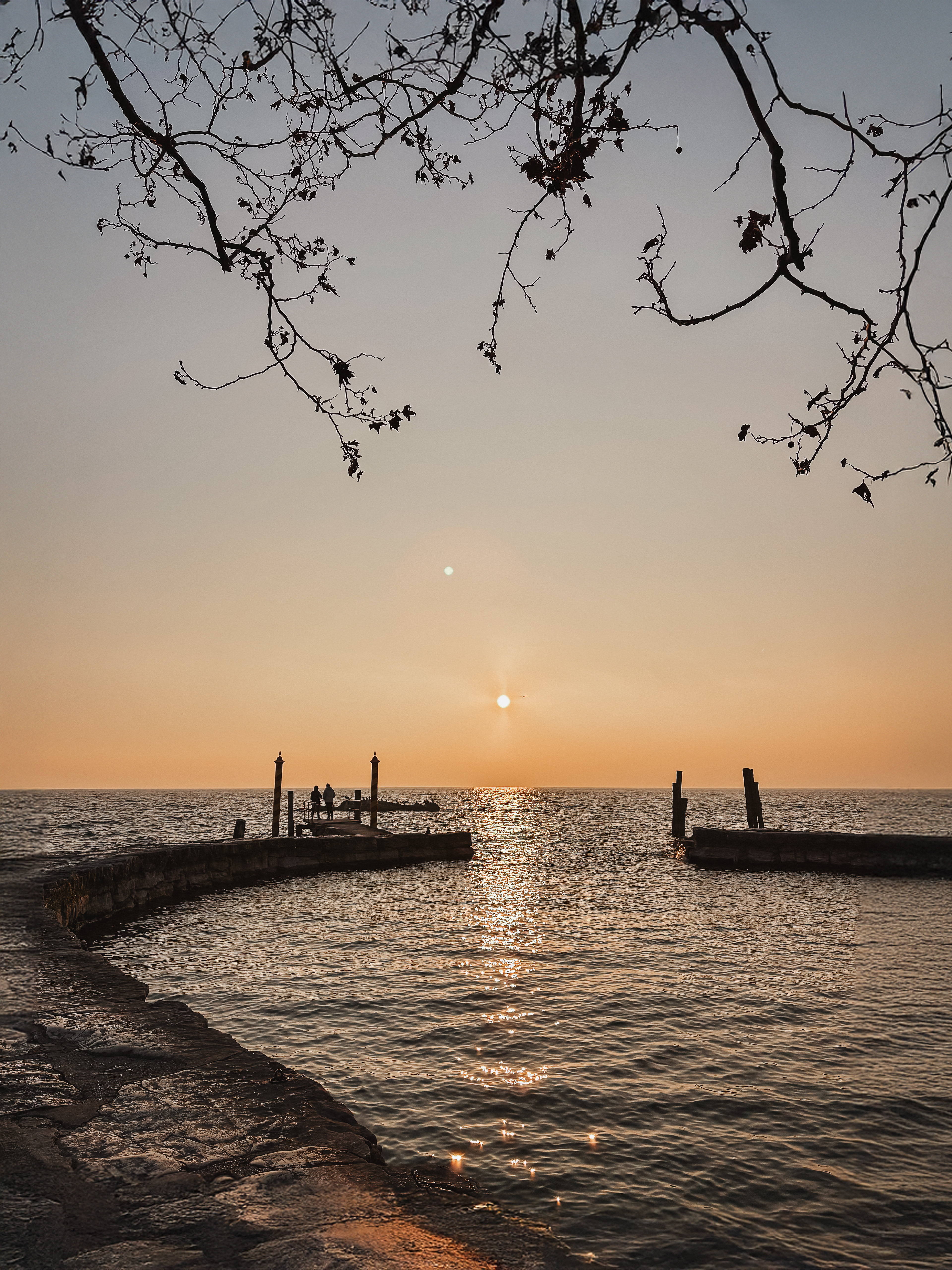 Cestou z Malcesine byl náš plán navštívit Torri a Olivový háj. Po zastavení v Torri jsme si ale řekli, že je to vlastně dost podobné jako v Malcesine (ale bez výhledu z hradu na kopci) a dva hrady v jeden den už je pro Marci příliš velká dávka historie. Vyrazili jsme k Olivovému háji, do kterého se Ondra náležitě vybavil dekou a lahví prosecca. Byli jsme ale nemile překvapeni, protože bylo zavřeno, z čehož byl zejména Ondra hodně zklamaný a Marci v tu chvíli moc nechápala proč. Došli jsme alespoň k molu u jezera a užili si tam začínající západ slunce. Poté jsme vyrazili na slepo zpátky s tím, že zastavíme tam, kde se nám bude líbit (což ostatně děláme docela často).