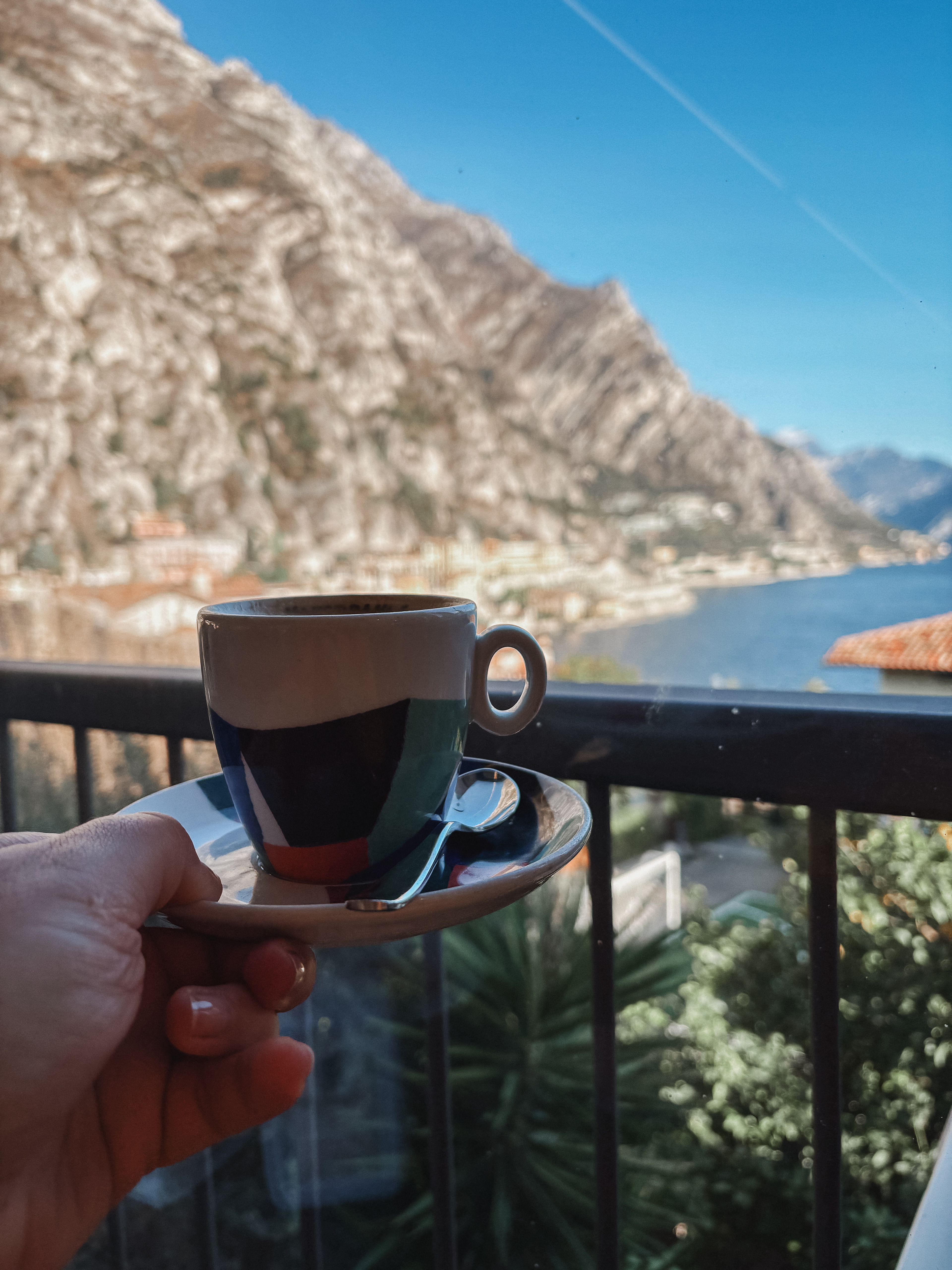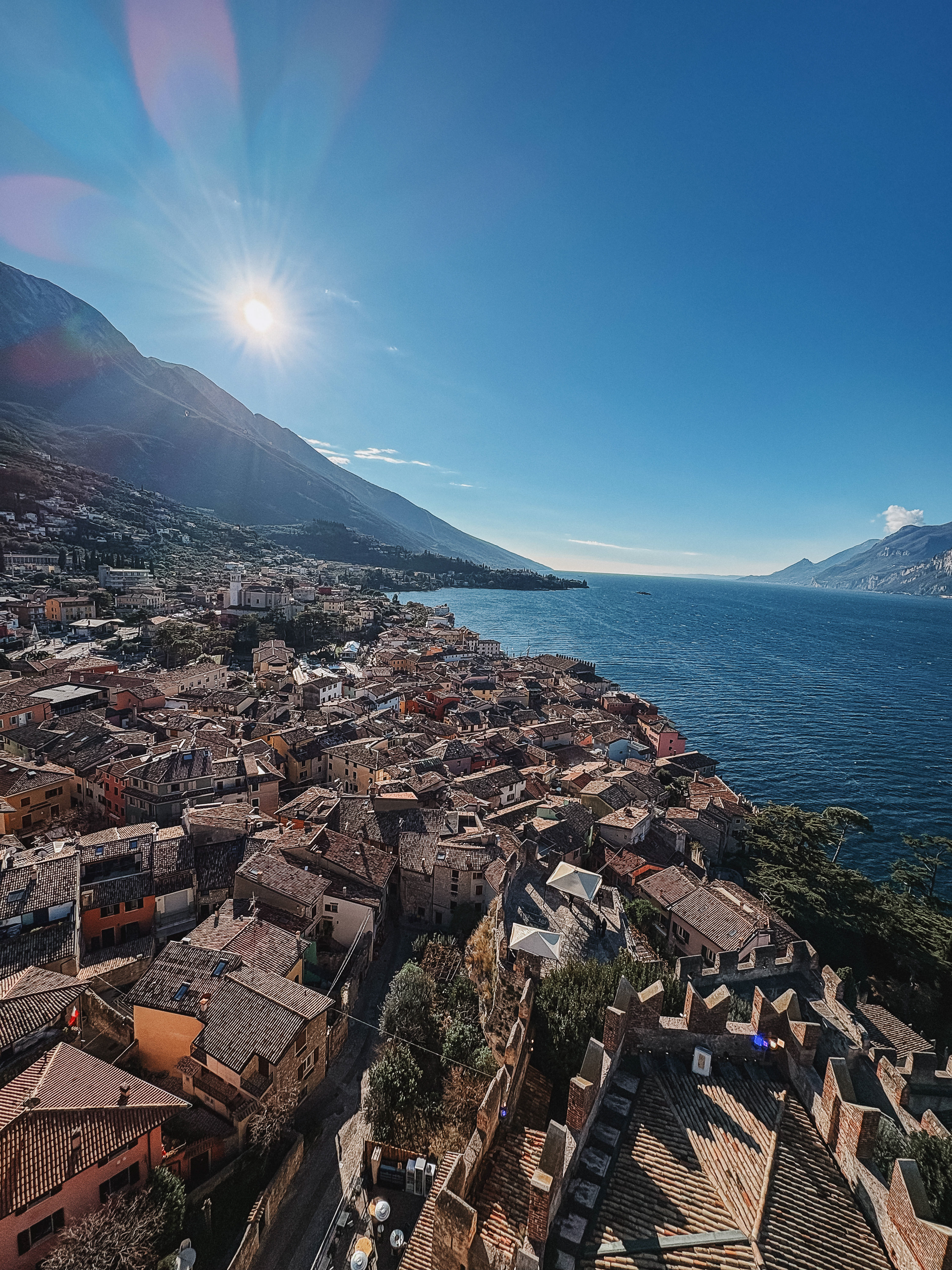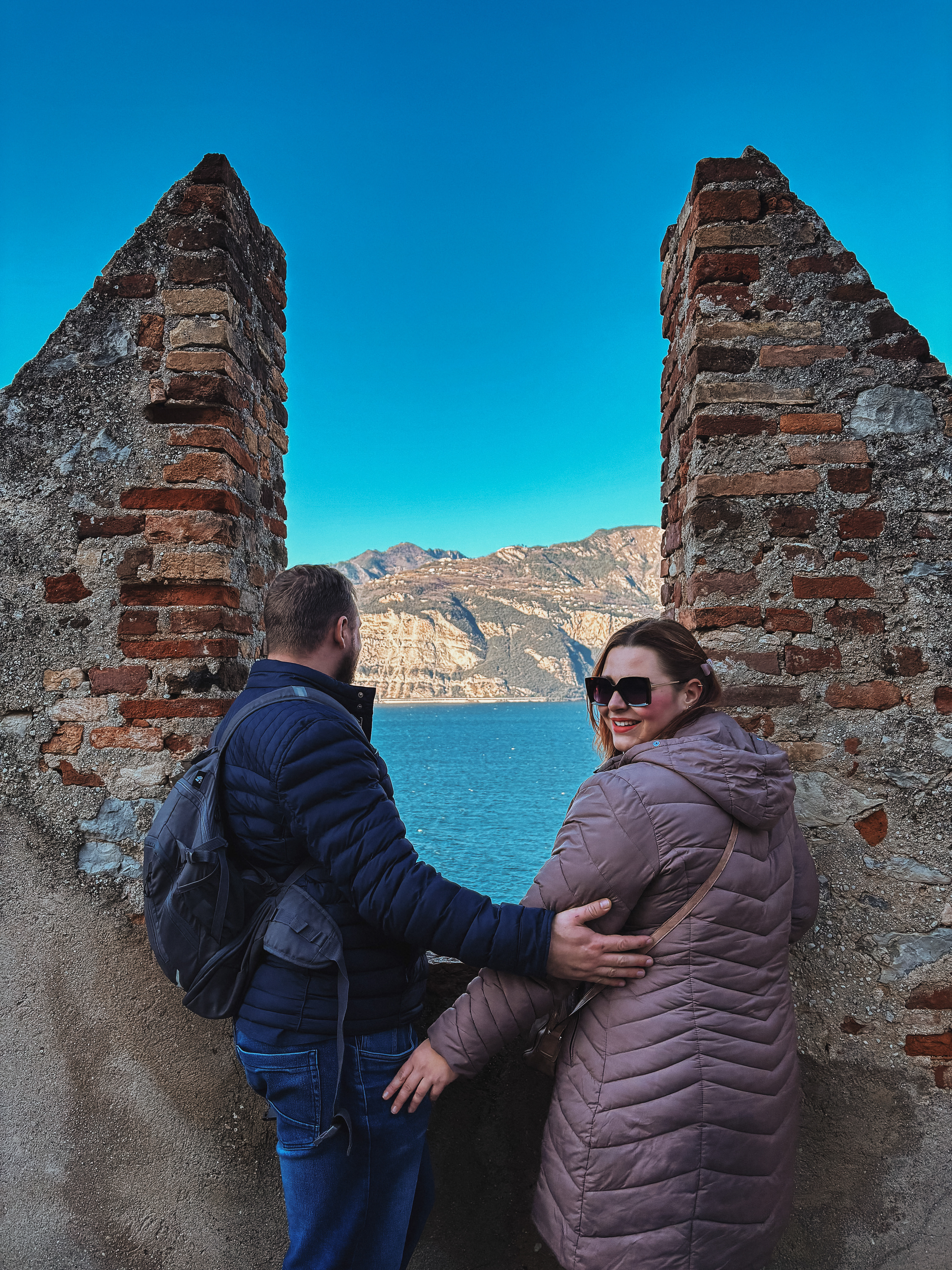 Po rychlé snídani v bistru, kde jsme si dali italskou klasiku - kávu a croissant, jsme vyrazili na severnější část jezera do městečka Malcesine. Ondra ho již v minulosti navštívil, takže krása města a uliček byla velkým překvapením hlavně pro Marci. Ta okouzlena místem souhlasila i s návštěvou hradu. Jeho dominantou jsou jednotlivé terasy s krásnými výhledy na jezero a okolí. Marcelka si nemohla nevšimnout terasy nachystané na svatební obřad. Po hradě jsme si prošli uličky města a vyrazili do přístavu, kde jsme měli v plánu přejet trajektem na protější stranu jezera do města Limone sul Garda. Bohužel trajekty přes zimu tuto trať nejezdí, a tak jsme si, jak je nám velmi podobné, našli náhradní plán v podobě prosecca a italské kuchyně. Užili jsme si společně oběd s výhledem na jezero a sluneční svit.